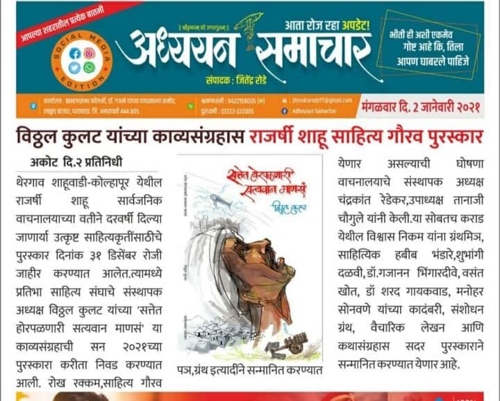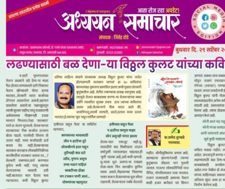 देविदास फुलारी के एक सशक्त कवि है । ऊनकी कविता का अनुवाद रचनाजी ने इतना जबरदस्त किया है की ये मराठी न होकर हिंदी कविता ही है, ऐसा लगता है। अनुवाद दो भाषाओम् के बीच का एक सेतू है और इस सेतू को मजबूत बनाने के लिये साहित्याक्षर का ये प्रयास जारी रहेगा ।