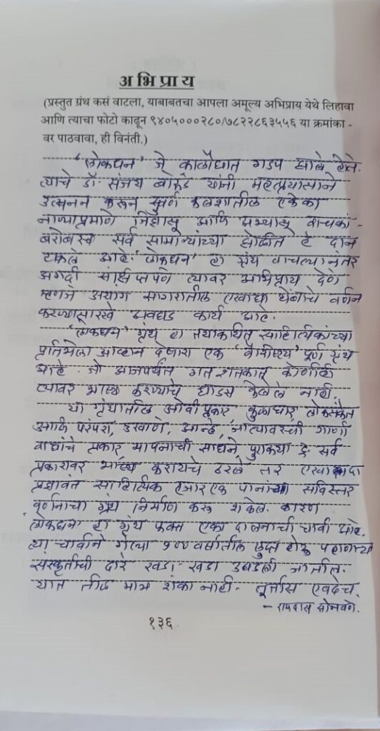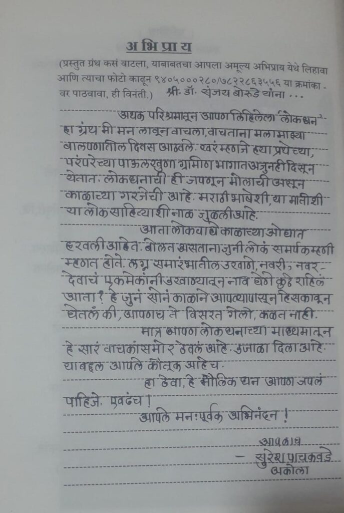 ‘लोकधन’ या पुस्तकावर वाचक व अन्य साहित्यिकांनी दिलेले अभिप्राय